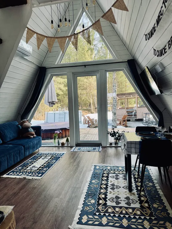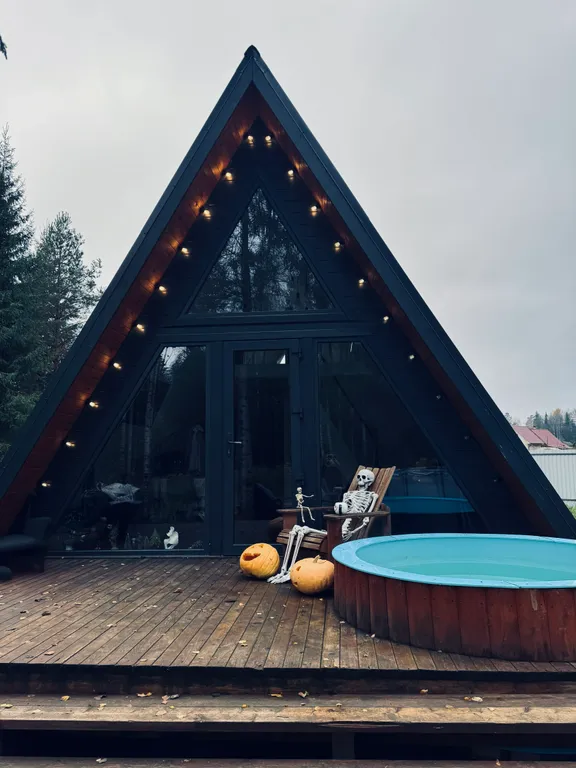 Дом A-frame с купелью, баней и бассейном в сосновом лесу в Великом Новгороде - аренда жилья по лучшей цене!
