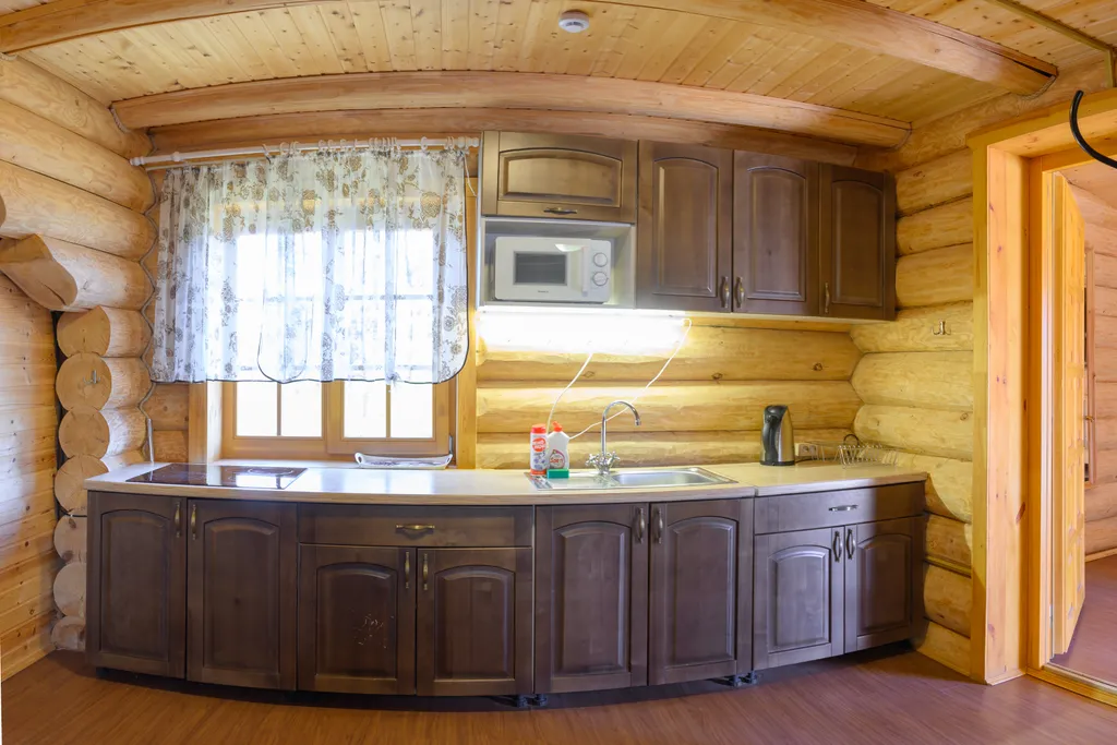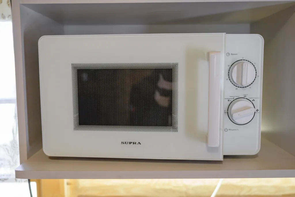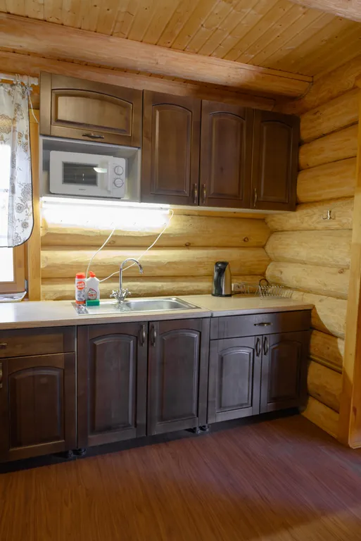 — Просторная кухня с полным комплектом посуды, варочной панелью, холодильником, микроволновкой и электрочайником